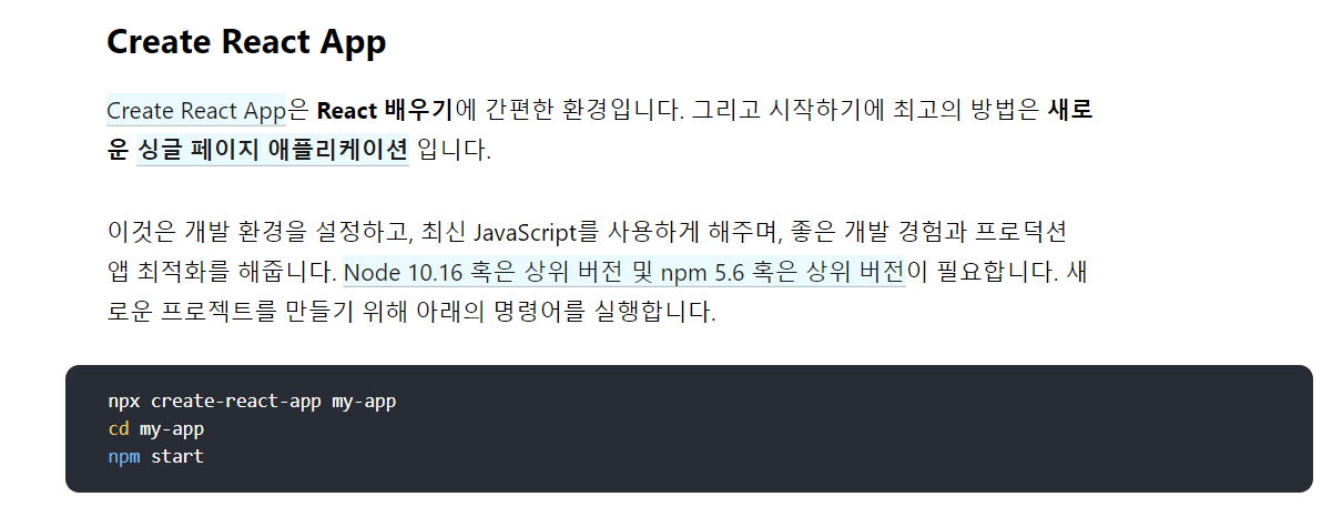 ๐ ๊ณต์๋ฌธ์์ ๋์จ Create React App ์ ์ฌ์ฉํ์ฌ ์ธํ ํฉ๋๋ค. ( ๋ฆฌ์กํธ ๊ณต์๋ฌธ์ ๋งํฌ )